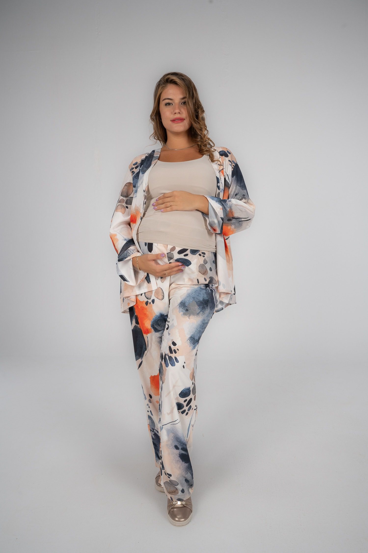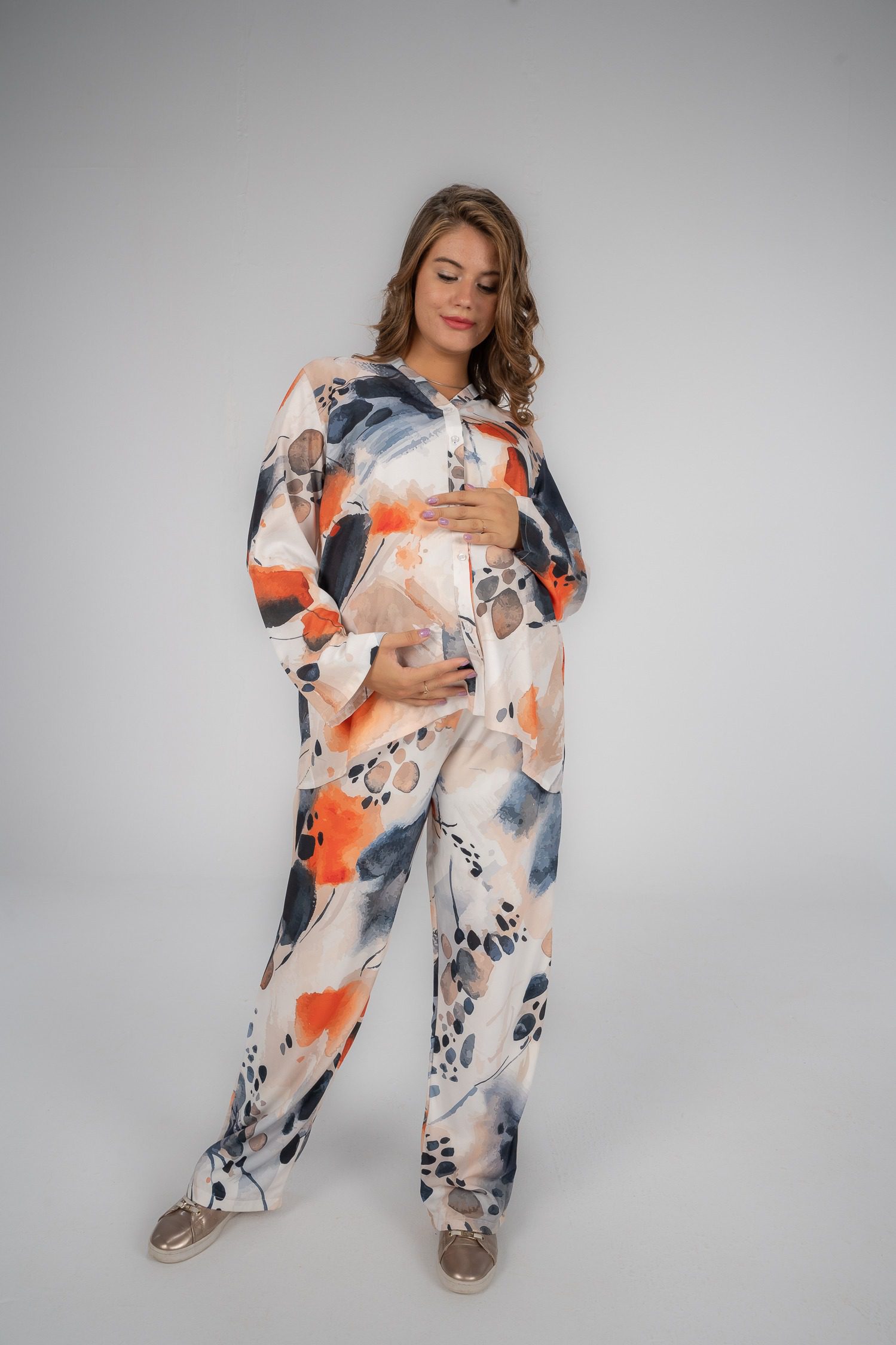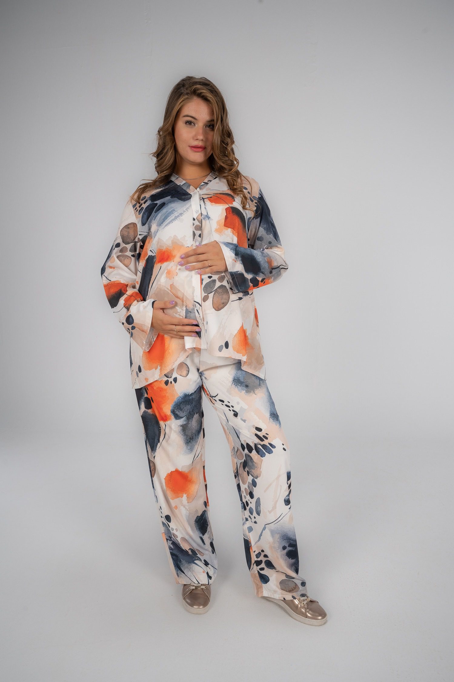 هذا الطقم هو الانسب ليكي خلال فترة حملك. الخامة ناعمة و فضفاضة مع جيوب جانبية و البنطلون غير شفاف.