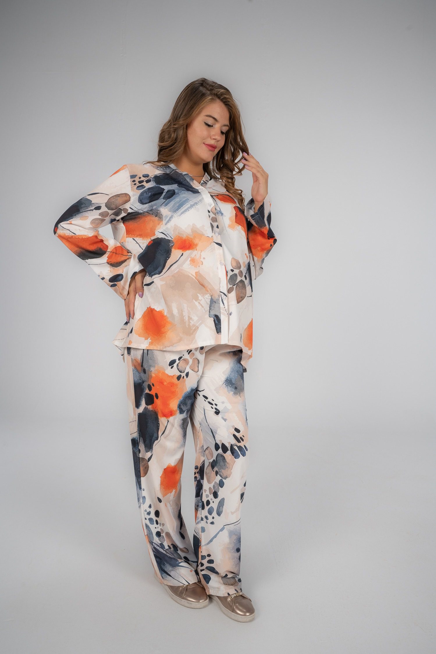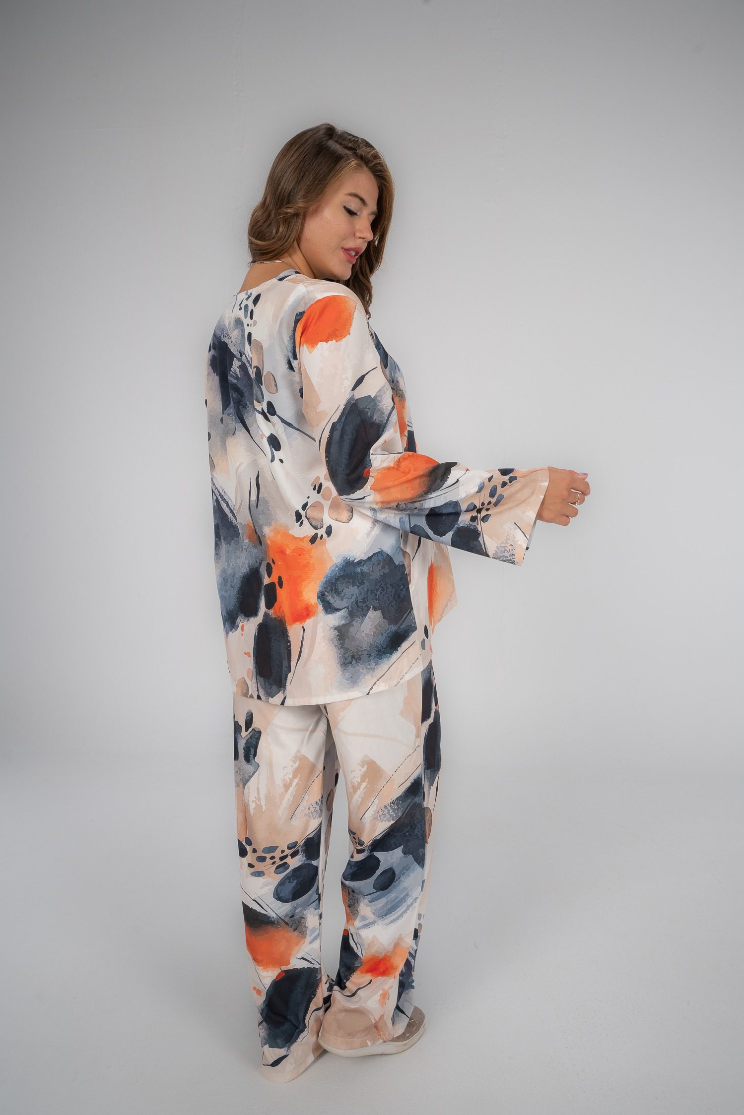 طقم موسمي بيج x برتقالي