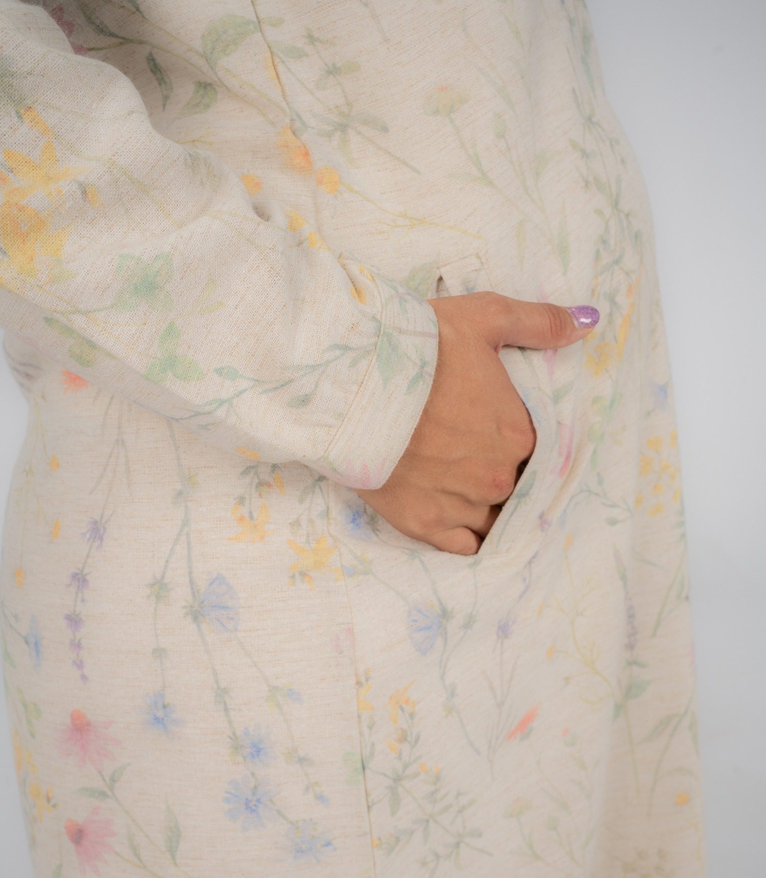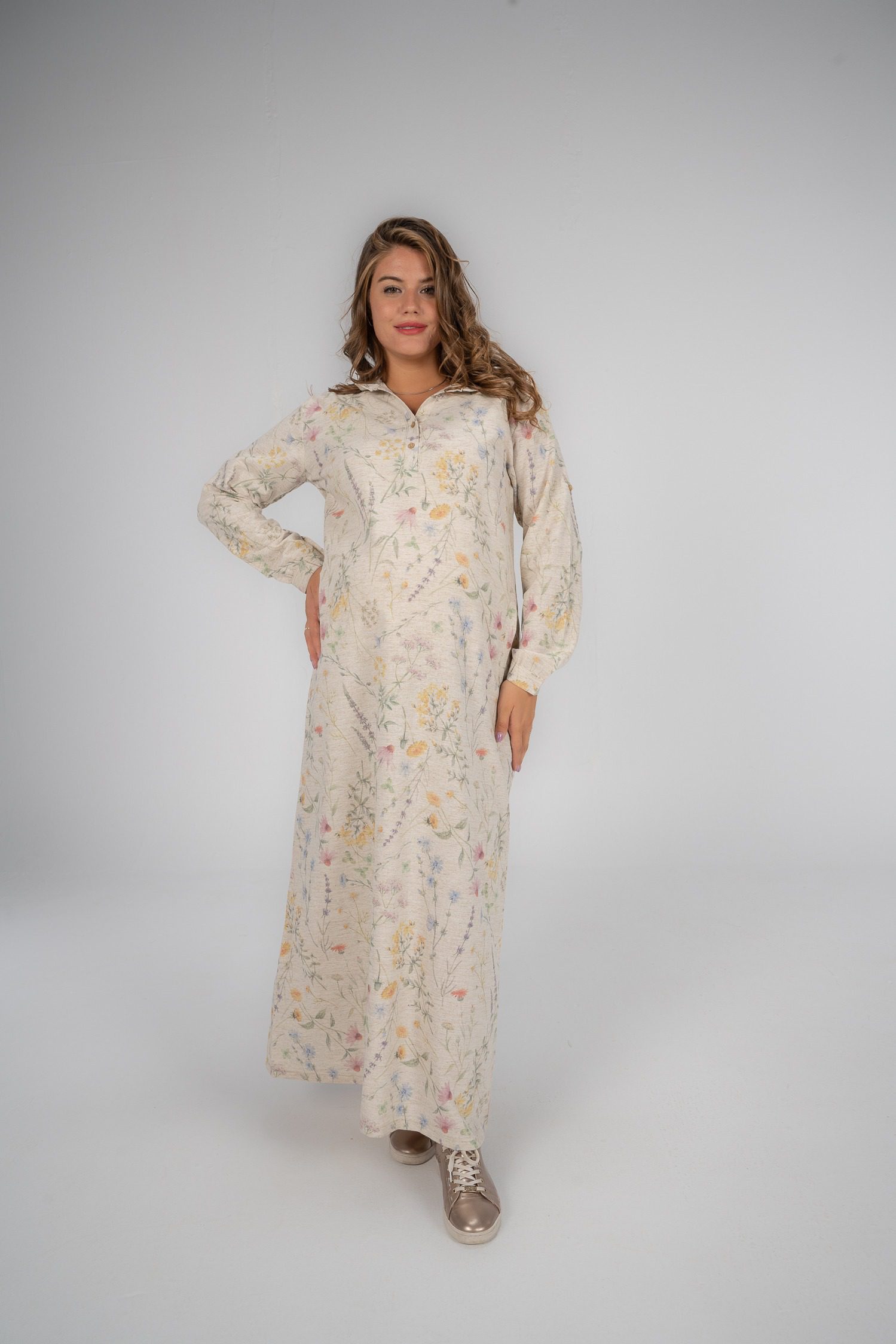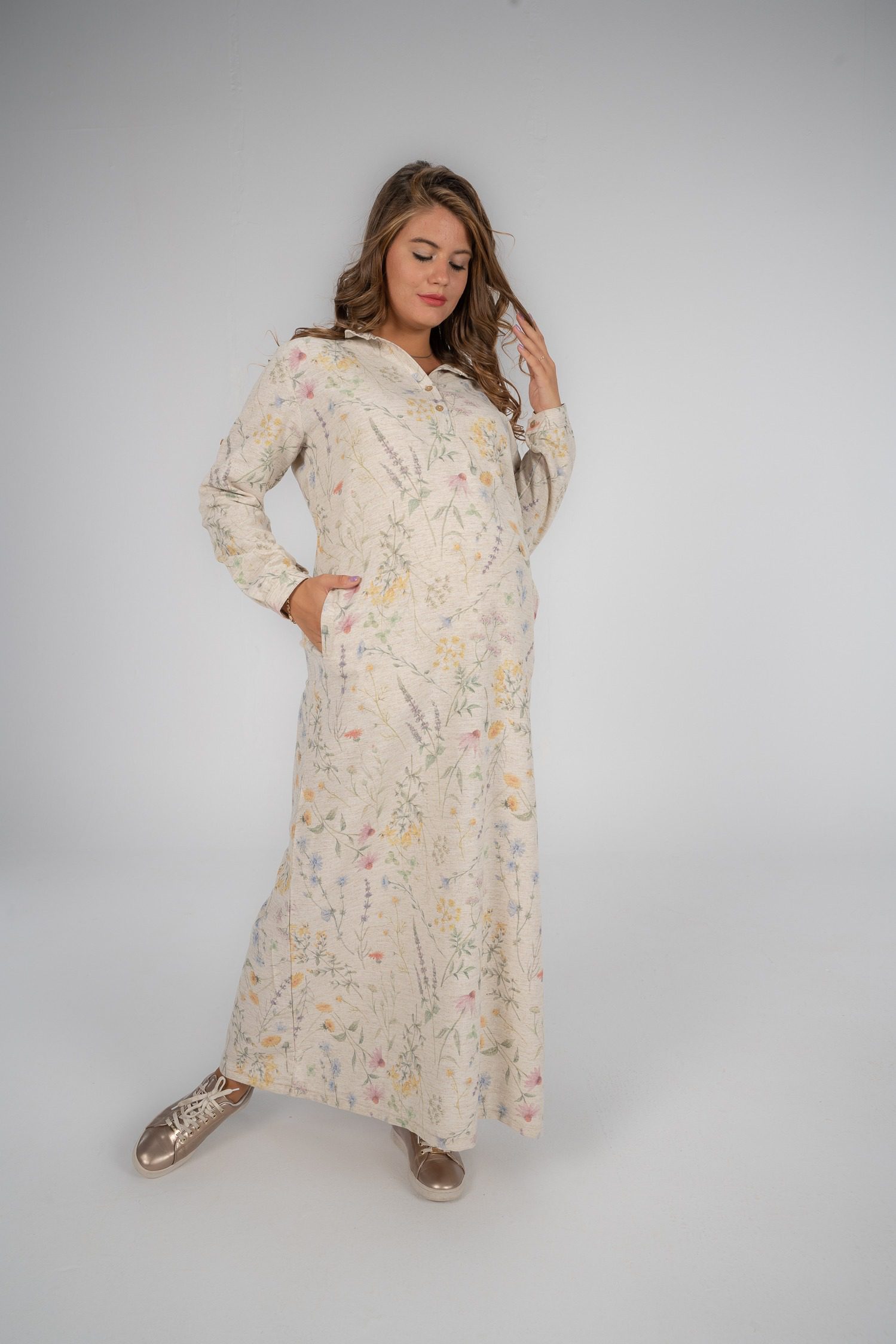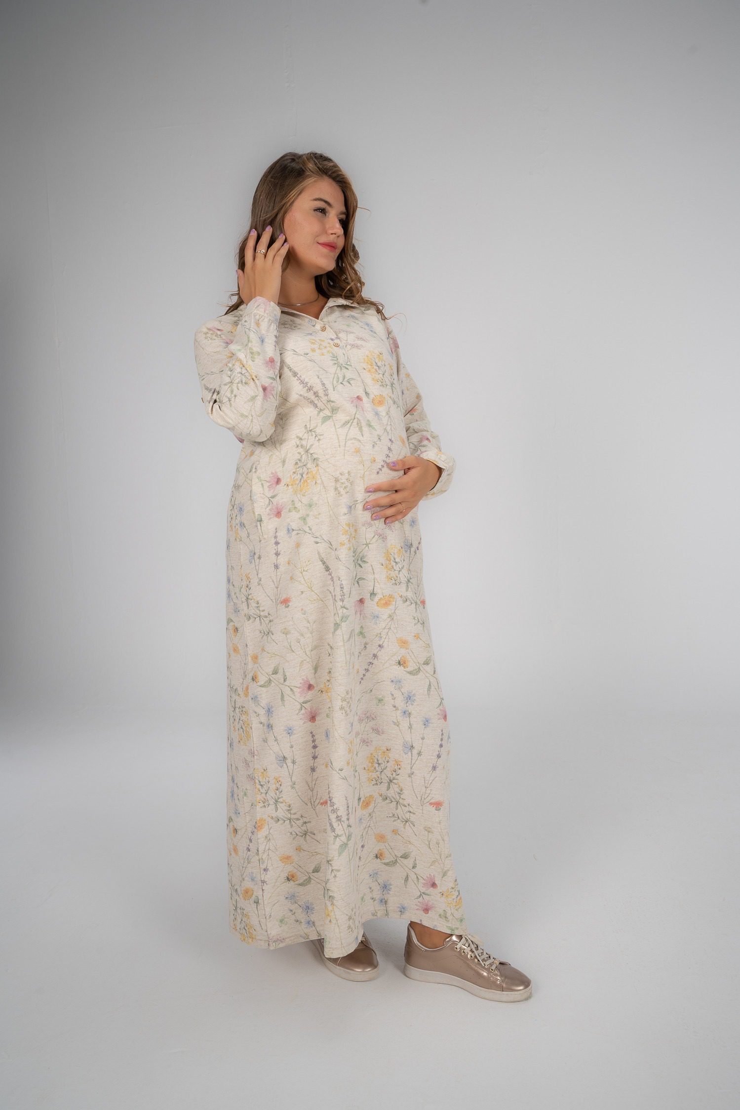 فستان ماكسي ورد رقيق جدا و مريح لمواسم الصيف و الخريف. يتميز بالنعومة والاناقة طوال فترات الحمل و الرضاعة و ما بعدهم.