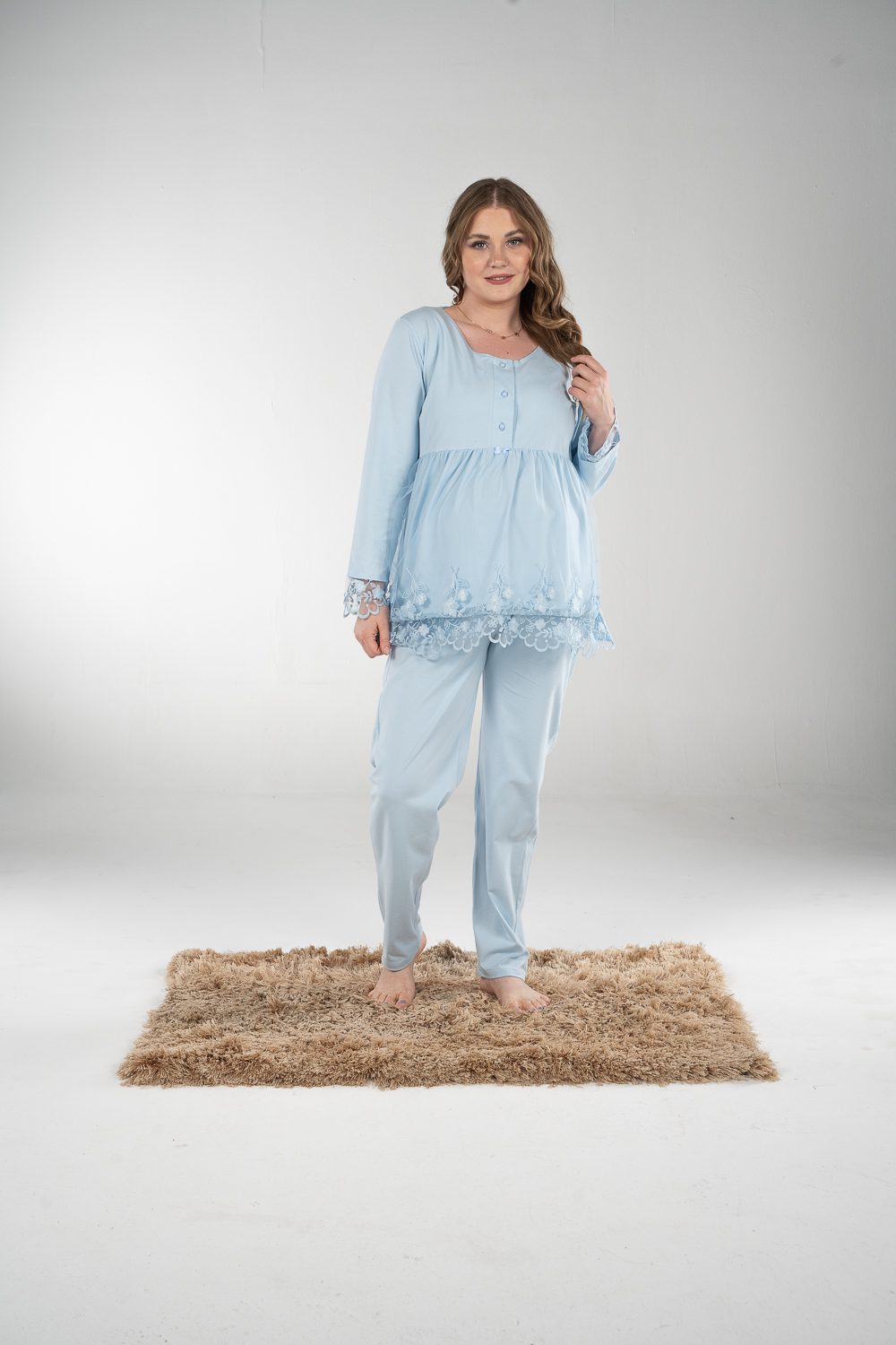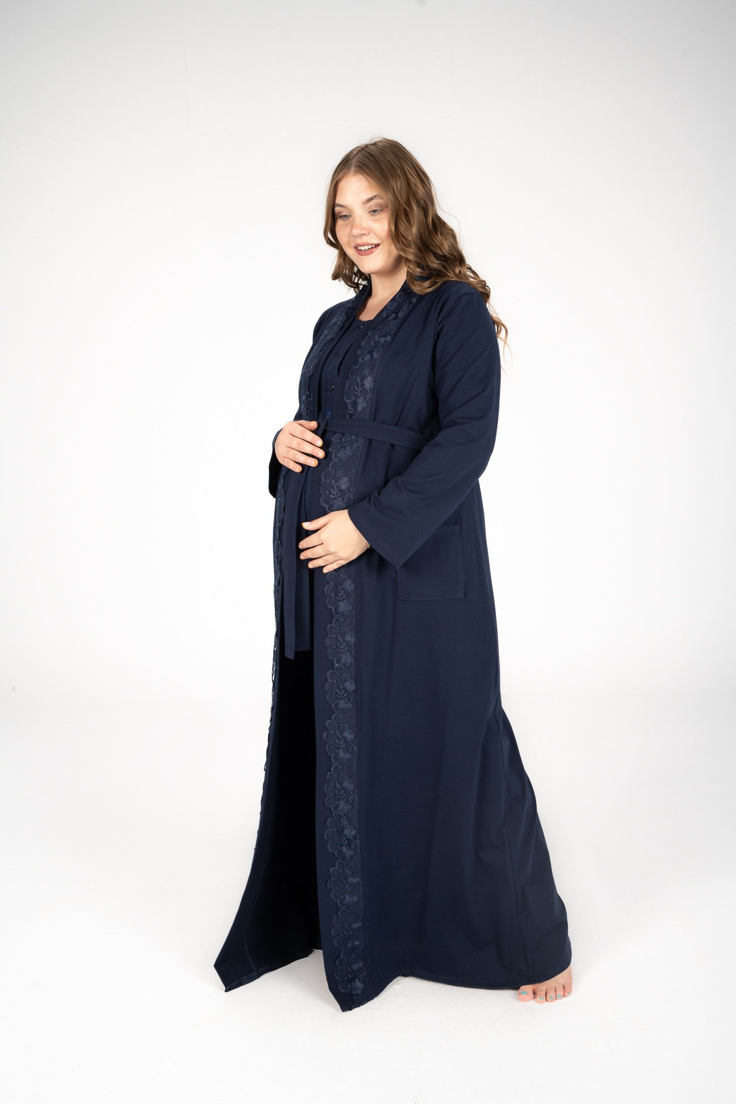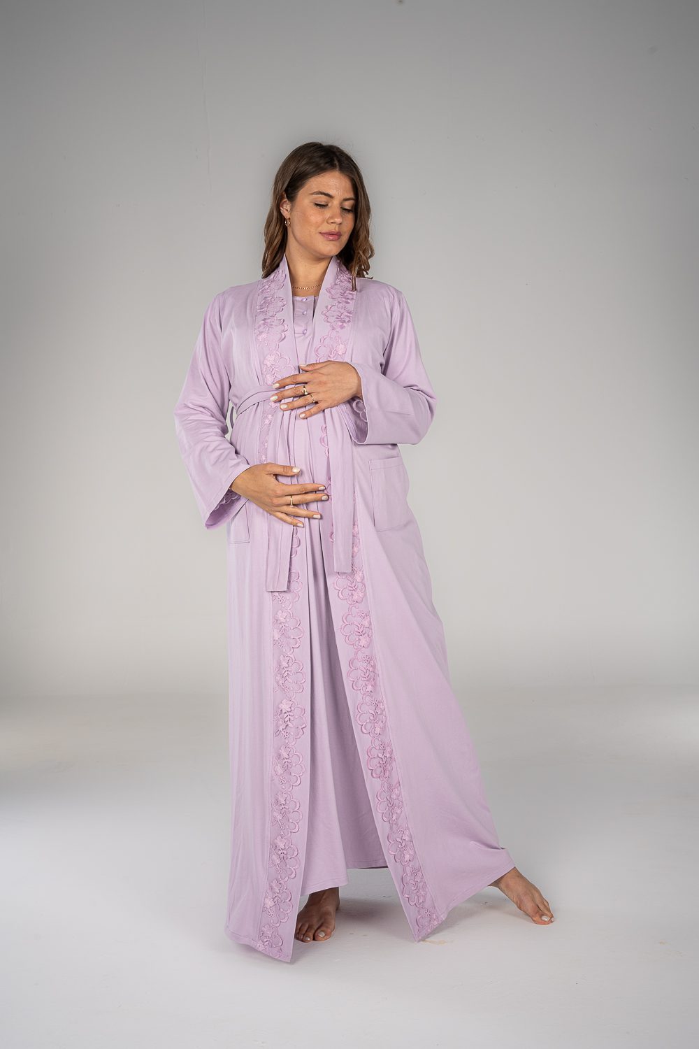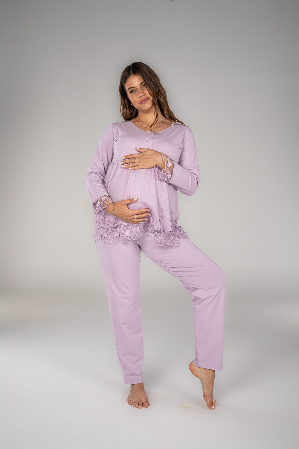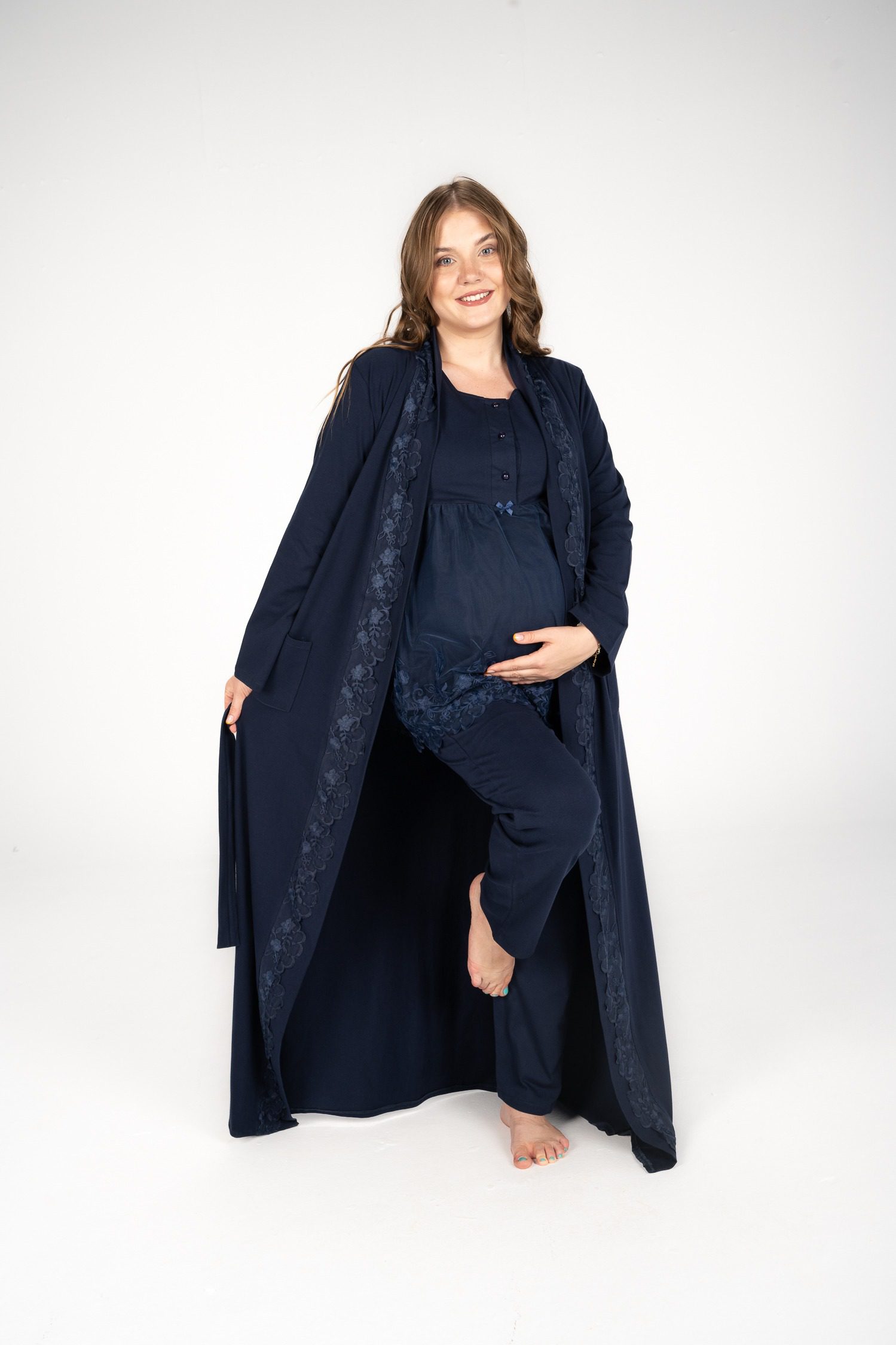 Stay cozy at home and elegant with our maternity and nursing pajama set of 3. Available sizes from S to XXL.
