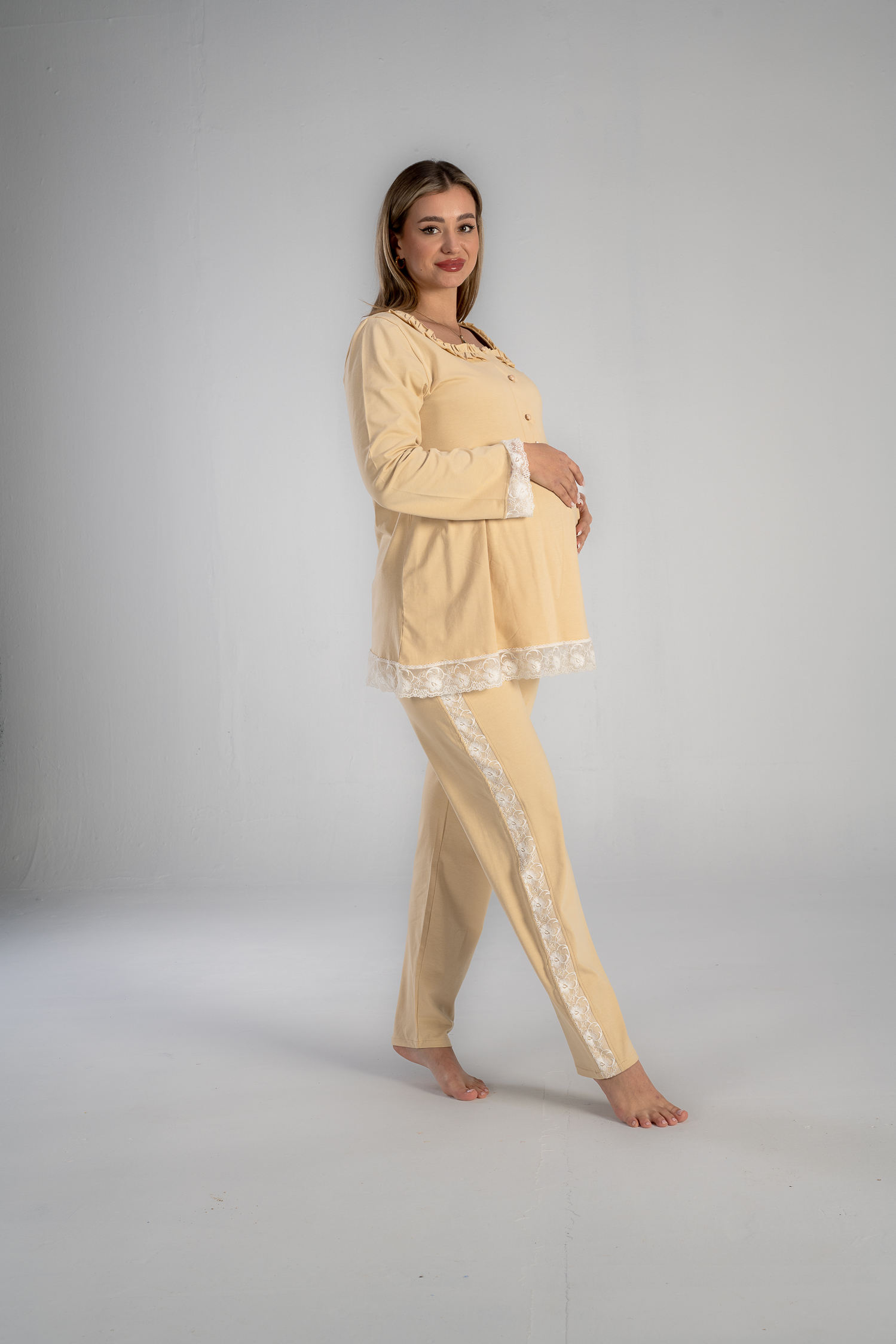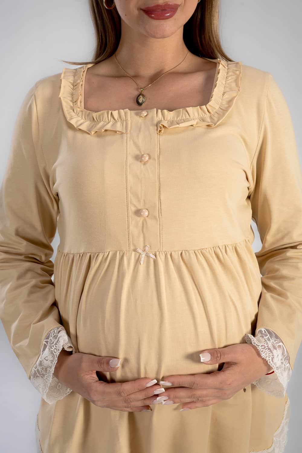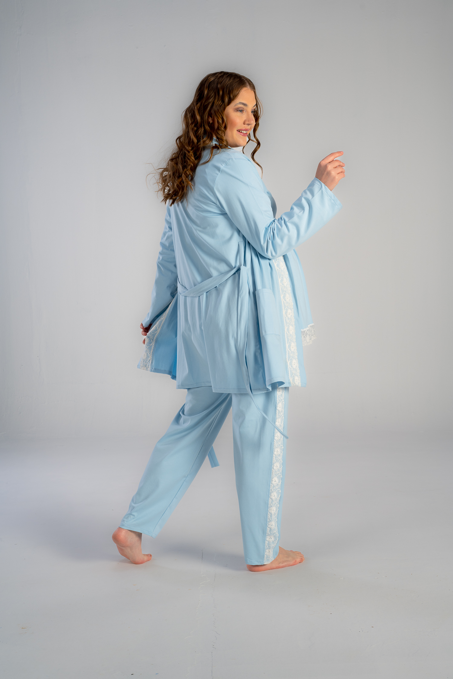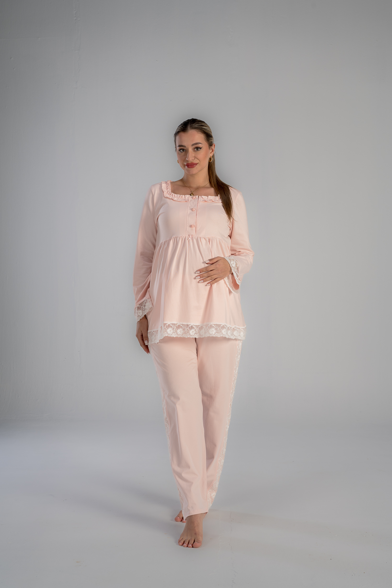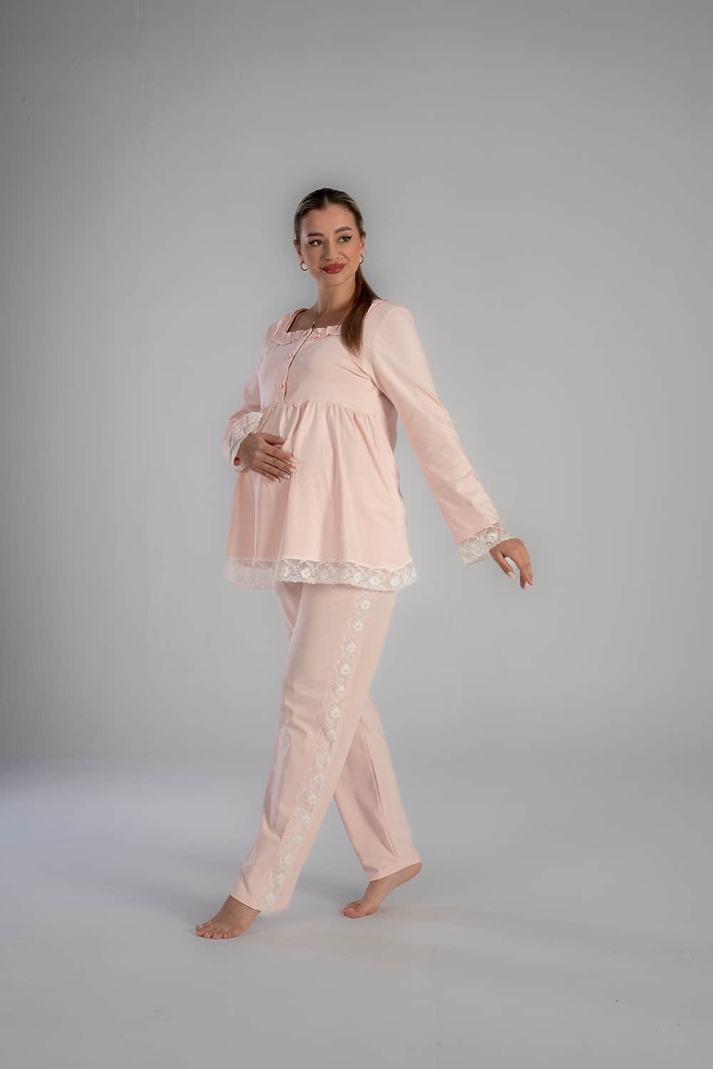 Get the mommy wardrobe essential maternity and nursing set.The set includes: a breathable short robe, and a comfortable long-sleeve PJ with adjustable waist. Crafted from premium materials, this set offers both comfort and style throughout your pregnancy.