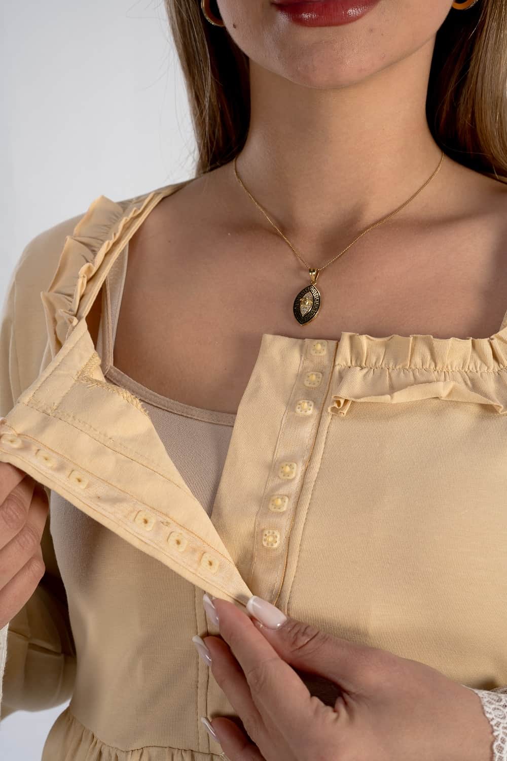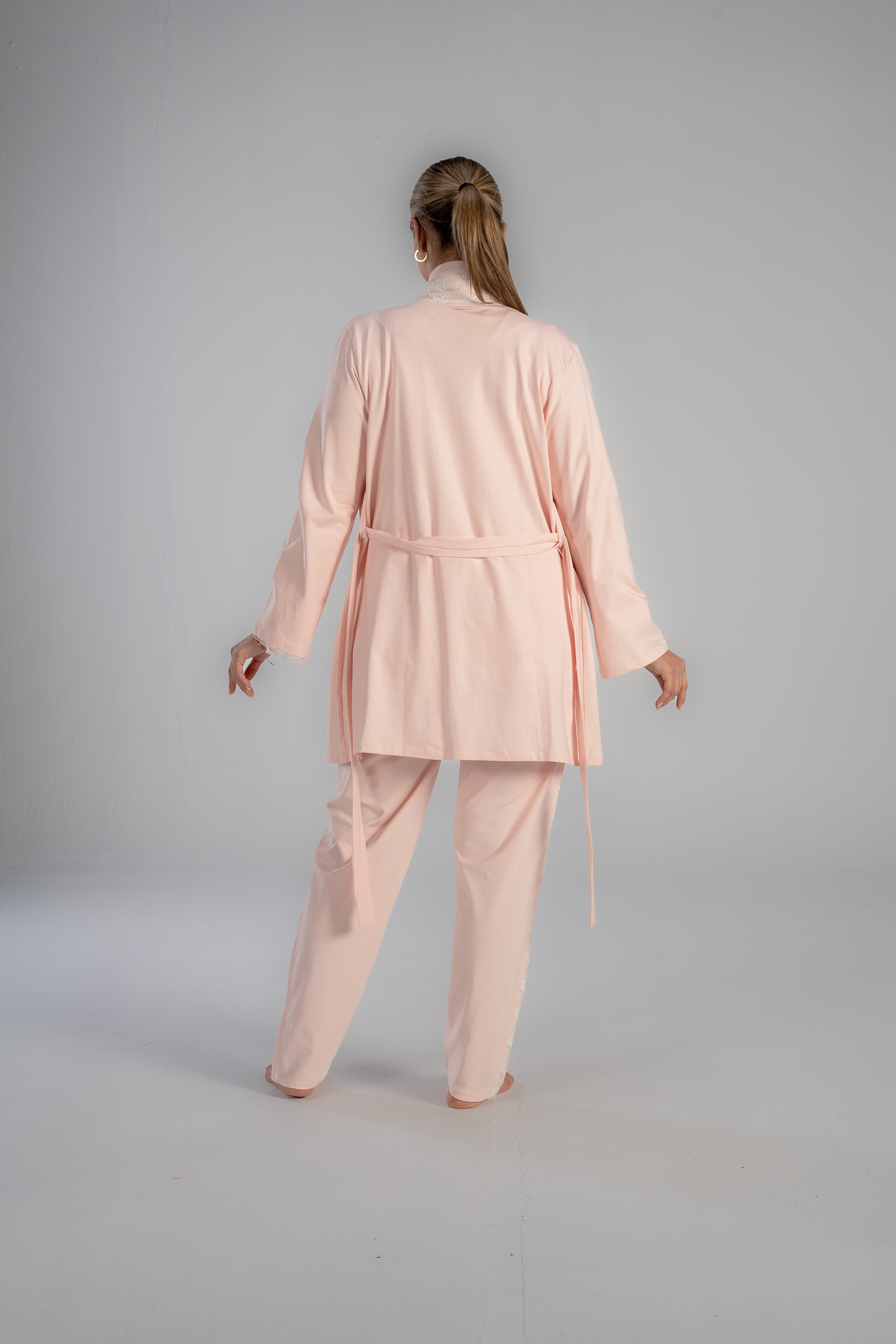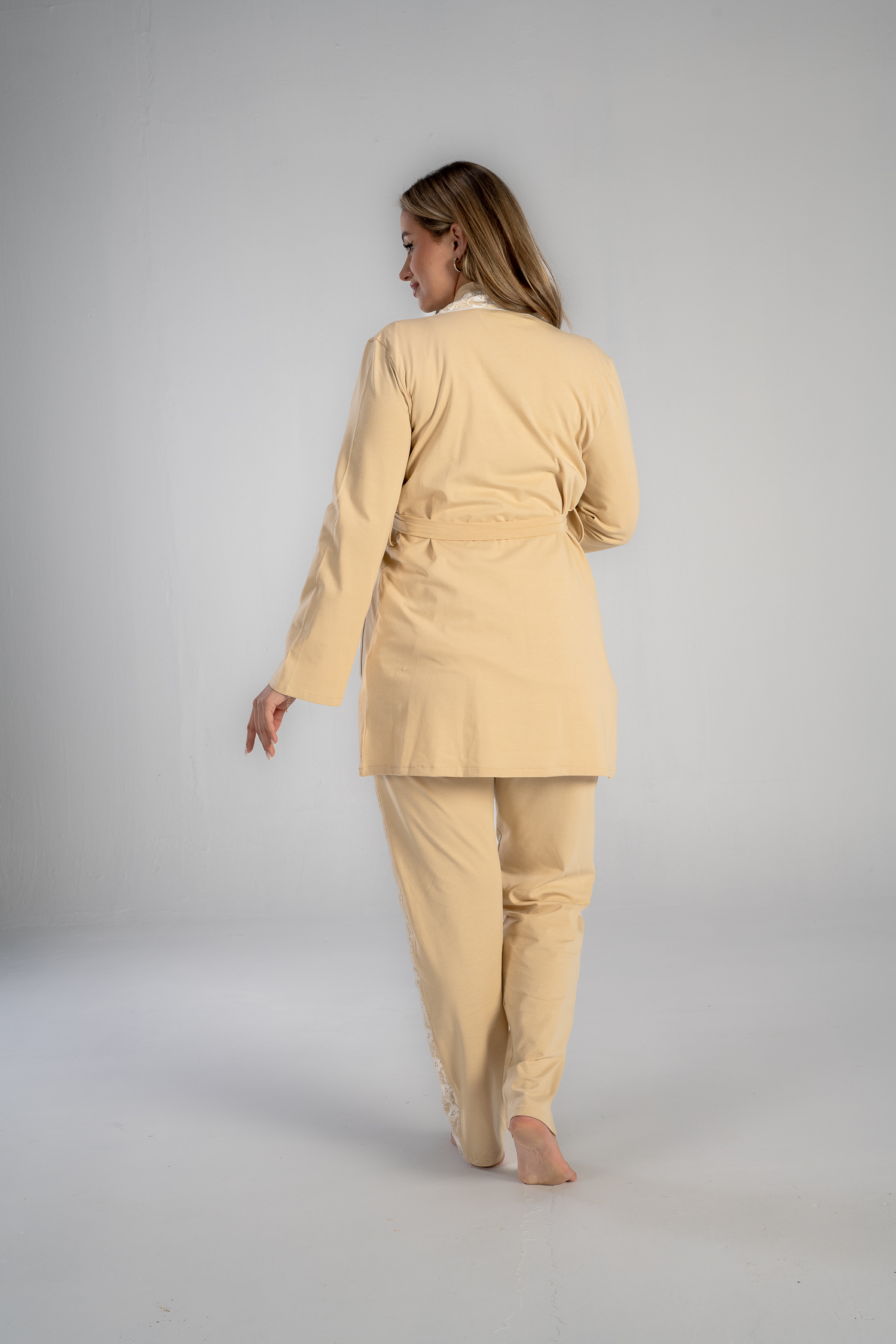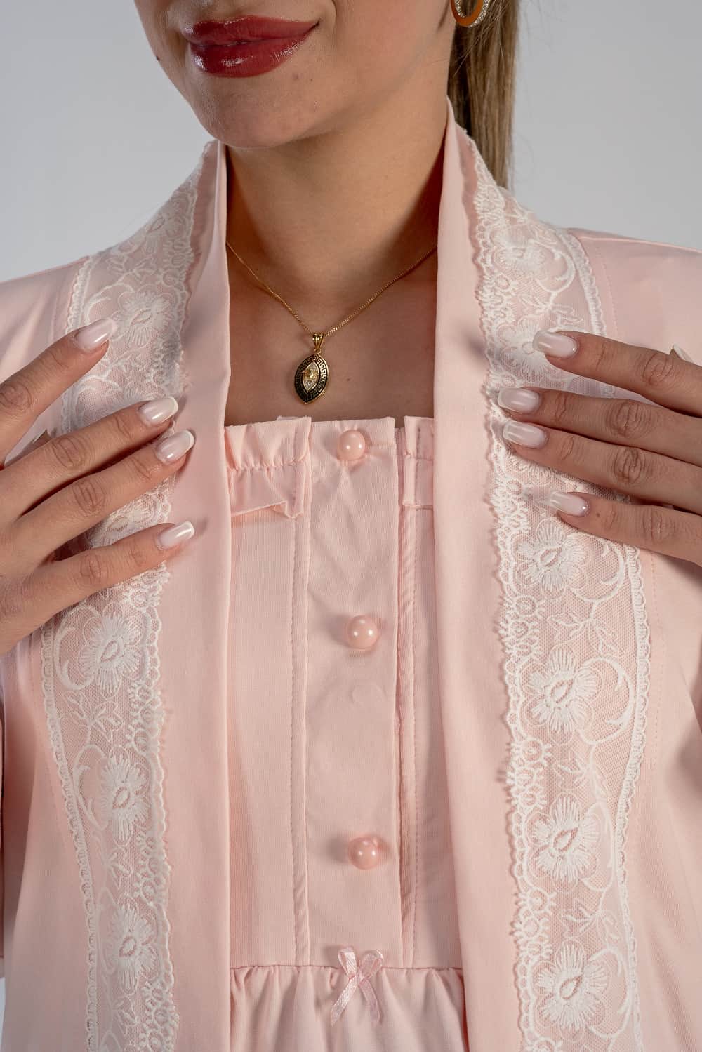 Get the mommy wardrobe essential maternity and nursing set.The set includes: a breathable short robe, and a comfortable long-sleeve PJ with adjustable waist. Crafted from premium materials, this set offers both comfort and style throughout your pregnancy.